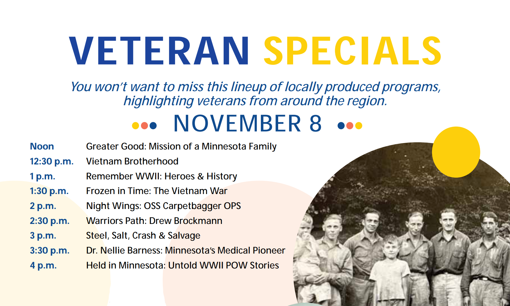 Pioneer PBS will present locally produced veteran stories on Saturday, November 8 from noon to 5 p.m.